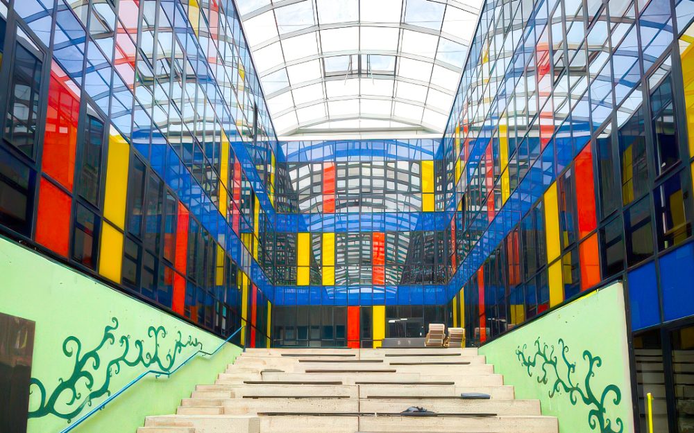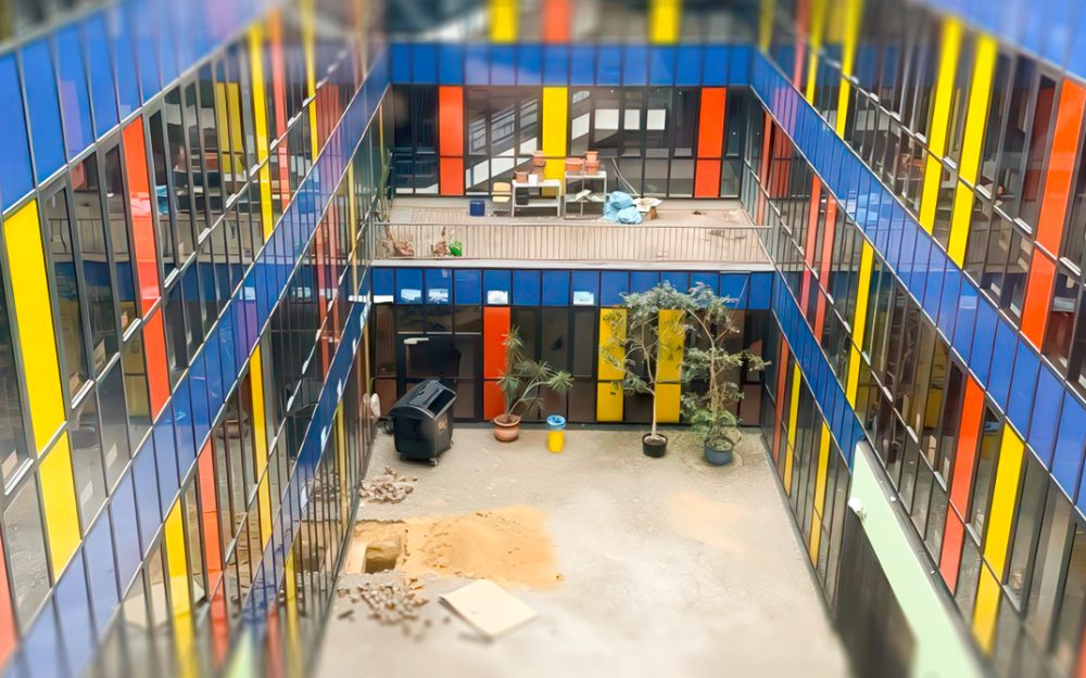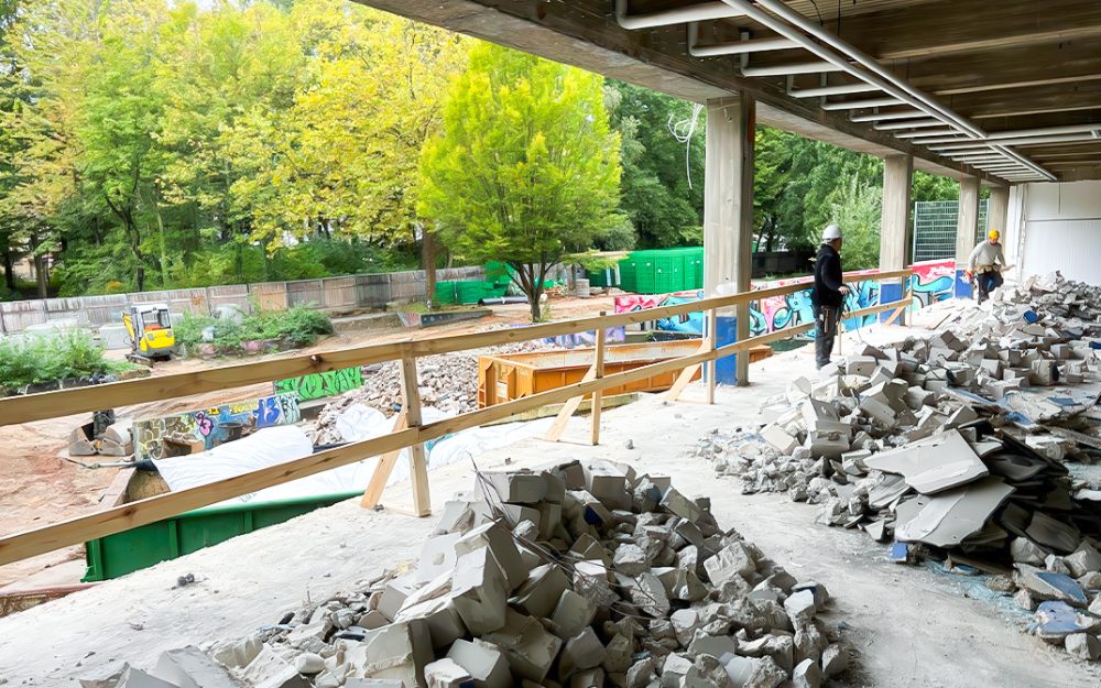 Anbau, Freianlagen und Sanierung eines 4-geschossigen Klassengebäudes innerhalb eines Schulcampus im laufenden Betrieb