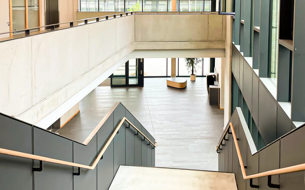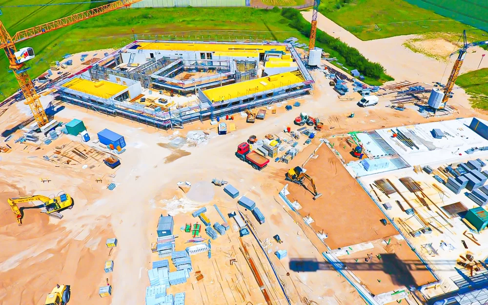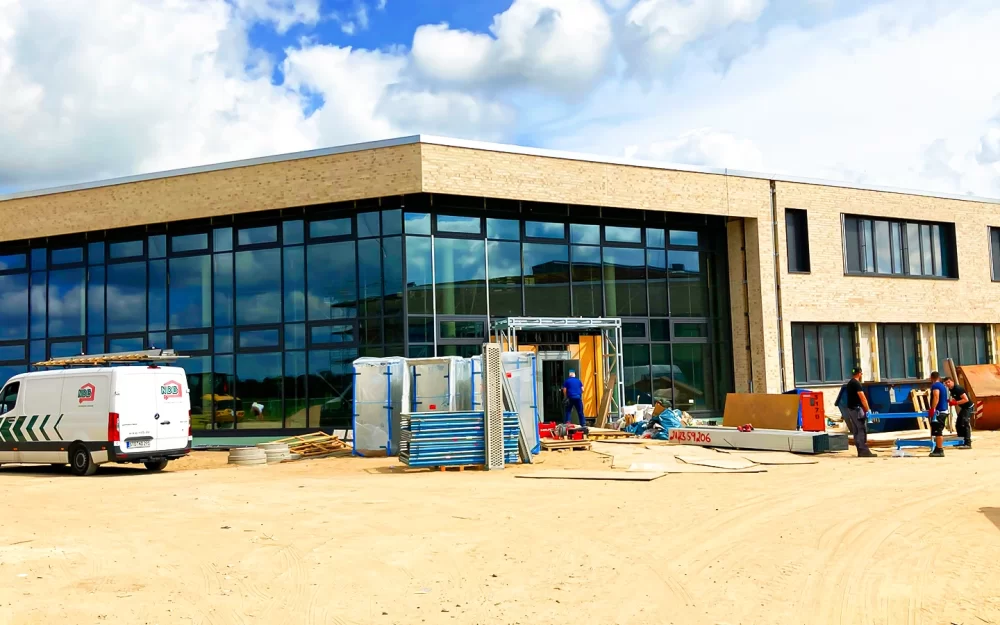Leis­tungs­um­fang LPH 8, bau­feld­über­grei­fen­de Ter­min­steue­rung. Neu­bau eines Schul­zen­trums mit Grund­schu­le, Regio­nal­schu­le und Zwei­feld­sport­hal­le in Mas­siv­bau­wei­se auf 2 Ebenen.