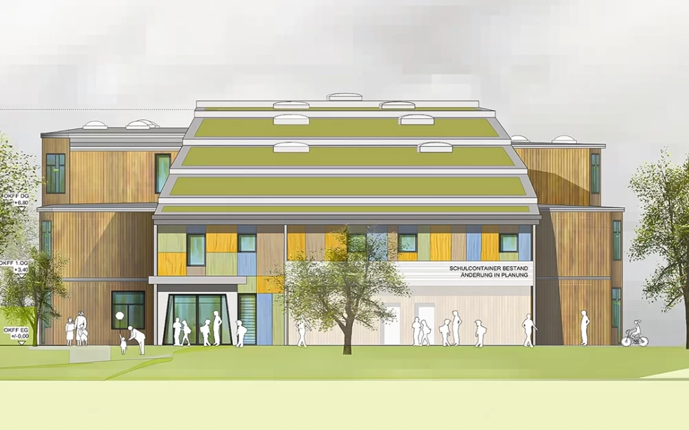 Neu­bau eines Haupt­ge­bäu­des zu zwei Pavil­li­ons und einer bestehen­den Containeranlage